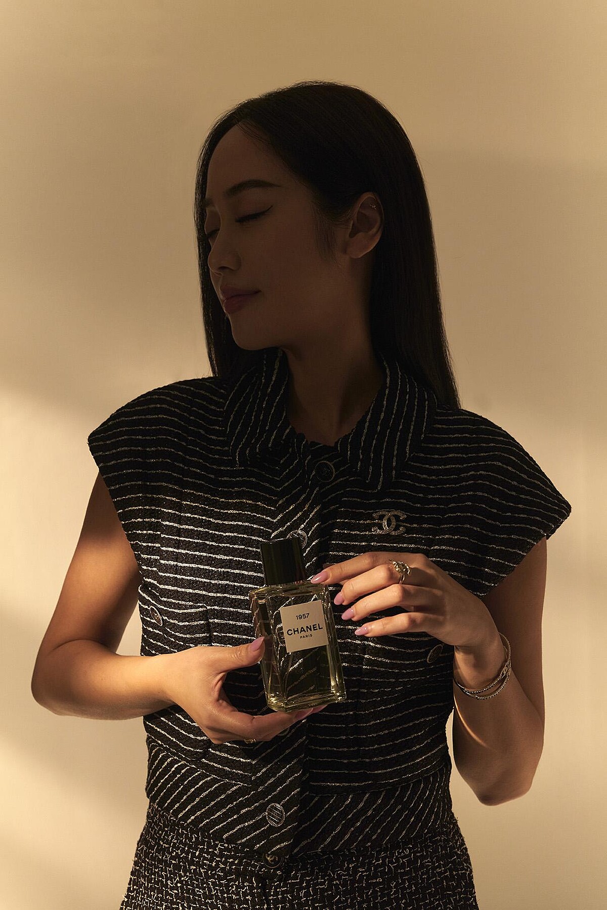 親自走訪法國了解香奈兒Les Exclusifs精品香水後,Tammy深深沈浸在這系列香水的魅力之中,尤其深受「精品香水1957」所觸動!「我好愛1957!我很喜歡香奈兒女士常用自己身邊的數字當成創作靈感,我也有這種對特定數字著迷的習慣…加上1957這數字的來由,訴說她跟美國的淵源(19是香奈兒女士的出生日期,57是美國香奈兒精品旗艦店的門牌號碼,1957年是香奈兒女士成功進入美國市場的年份),讓我聯想到我自己。我從小在美國出生長大,1957數字蘊含的意義跟我的成長過程也有所連結,而且香奈兒女士看重事業的積極態度,非常吸引我!」由香奈兒第三任(也是現任)專屬調香師奧利維耶‧波巨(Olivier Polge)所調製的「精品香水1957」,以八種白麝香搭配木質香、蜂蜜香、花香,交織出宛如美好「美國夢」般的柔軟舒適香氣,這個勾勒出香奈兒女士夢想與事業心的香氛,不僅感動了Tammy,也是吸引許多人開始愛上這系列香水的關鍵數字。