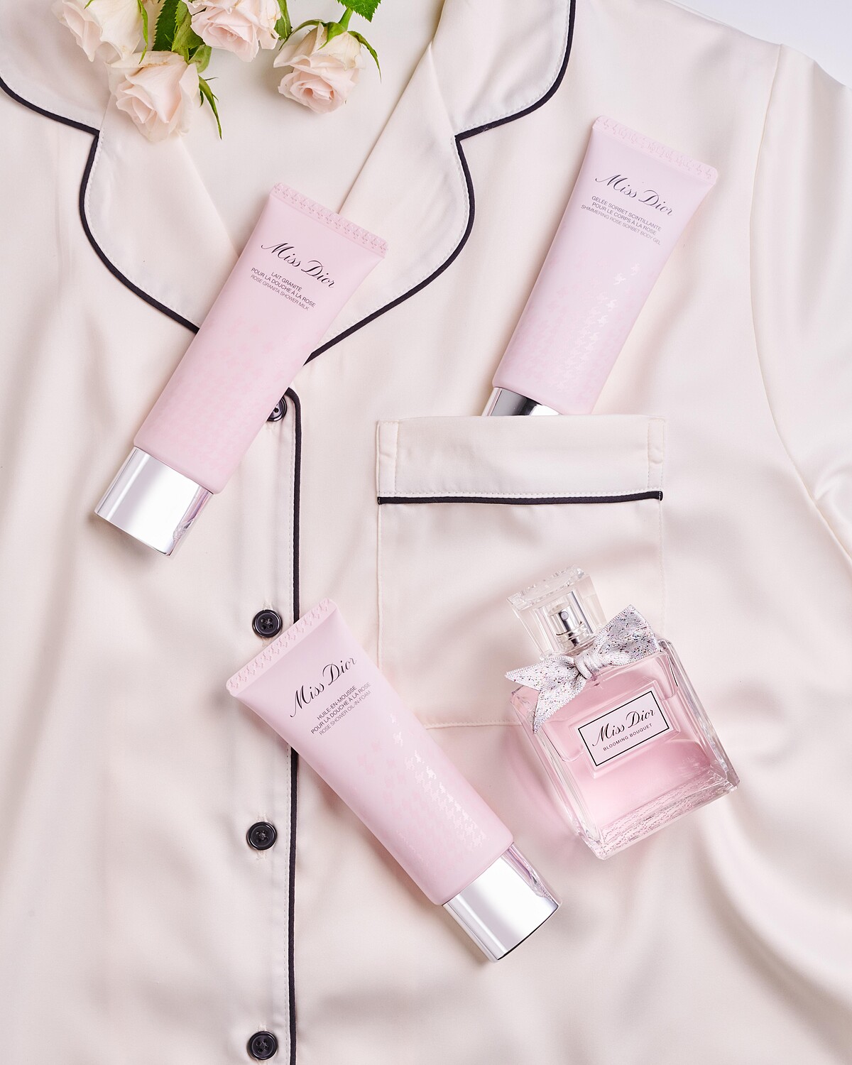 首先,用《MISS DIOR玫瑰泡泡沐浴露》為身心好好進行一場香氛療癒SPA,粉嫩晶透的凝露質地遇水即化為綿密豐盈的泡泡,在淡雅花香中以香氛精油、格拉斯玫瑰水好好寵愛肌膚,洗後水嫩柔滑不緊繃;接著使用《MISS DIOR玫瑰去角質乳霜》讓肌膚煥發透亮光!令人驚喜的乳霜質地蘊含細緻去角質微粒,為肌膚溫柔拋光、水嫩滋養;沐浴後全身塗抹《MISS DIOR玫瑰晶亮凝霜》,水感凝霜兼具清爽與高效潤澤,好吸收、不黏膩,不僅把香氣揉入肌膚,更像披上一層珠光薄紗,瞬間擁有嫩透亮細閃高級光澤肌。