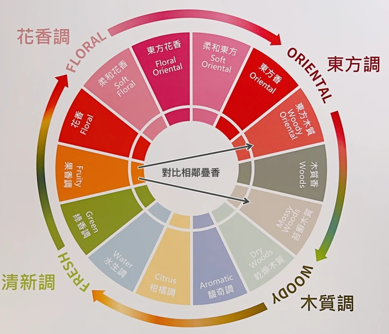 對香調有初步了解後,就可參考這個香調輪來選擇疊香的香味。