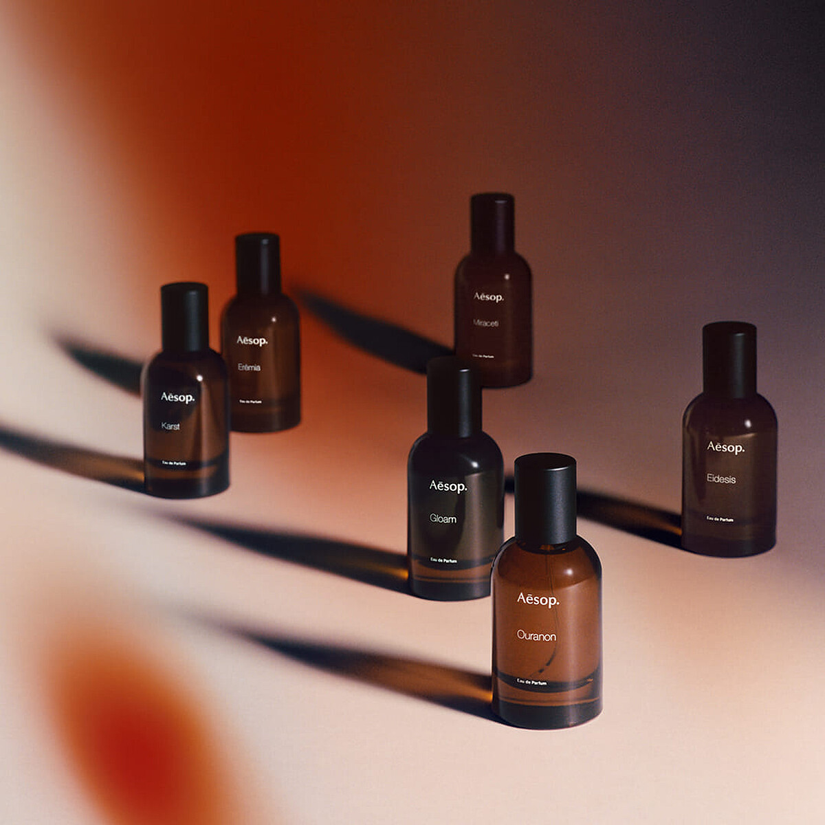 Aesop虛實之境系列第一幕三款香水:米拉塞蒂、喀斯特、埃雷米亞──於 2021 年推出。艾底希思於 2022 年上市,而在 2023 年格歐暮與烏拉諾相繼推出後,該系列在此劃下句點。烏拉諾是 Aesop 全香水家族的第十款香水,其他香水包括──馥香水,以及 Aesop 經典香水系列:馬拉喀什馥郁、悟香水、熾香水等,而台灣市場上「悟香水」及「艾底希思」都是品牌銷售常勝軍。