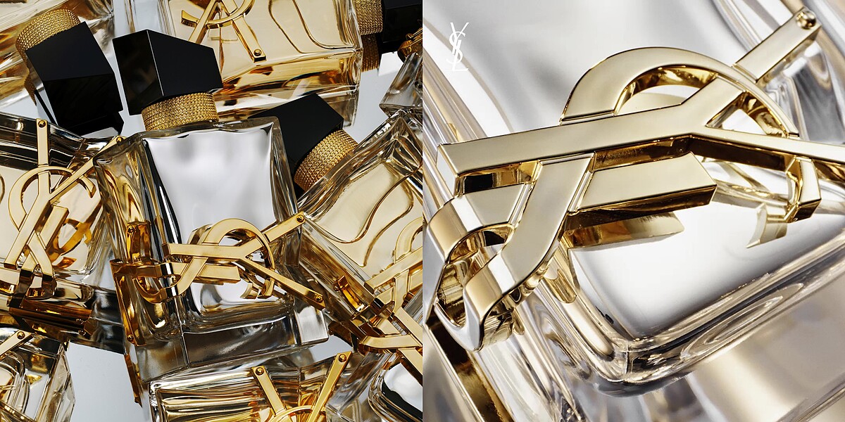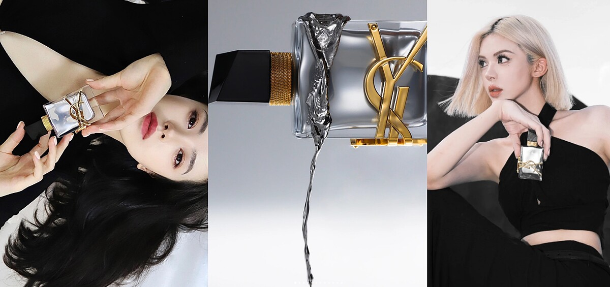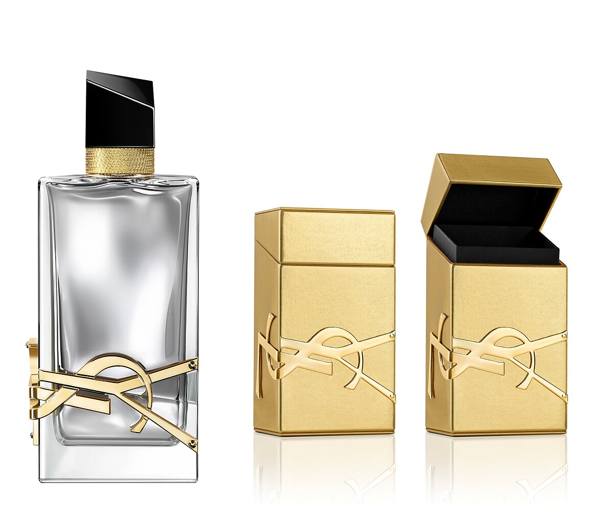 YSL自由不羈全香氛系列以經典吸菸裝的率性做為靈感設計,並以首次橫躺的CASSANDRE LOGO著名,金色的YSL彷彿穿戴在裸肌上的高級珠寶,瓶頸的金色頸鍊,如同YSL女性脖子上的藝術品,極致細緻,傾斜的黑色瓶蓋,添入一絲不對稱的時尚〪而「冷冽鉑金淡香精」更是突破框架,燙鍍銀鉑於透明瓶身內側,炫目耀眼的設計,隨著光線的照射下,閃爍鑽石般的閃爍發光,如同一件高級時裝珠寶作品,絕對是梳妝台上最閃耀的美妝品。