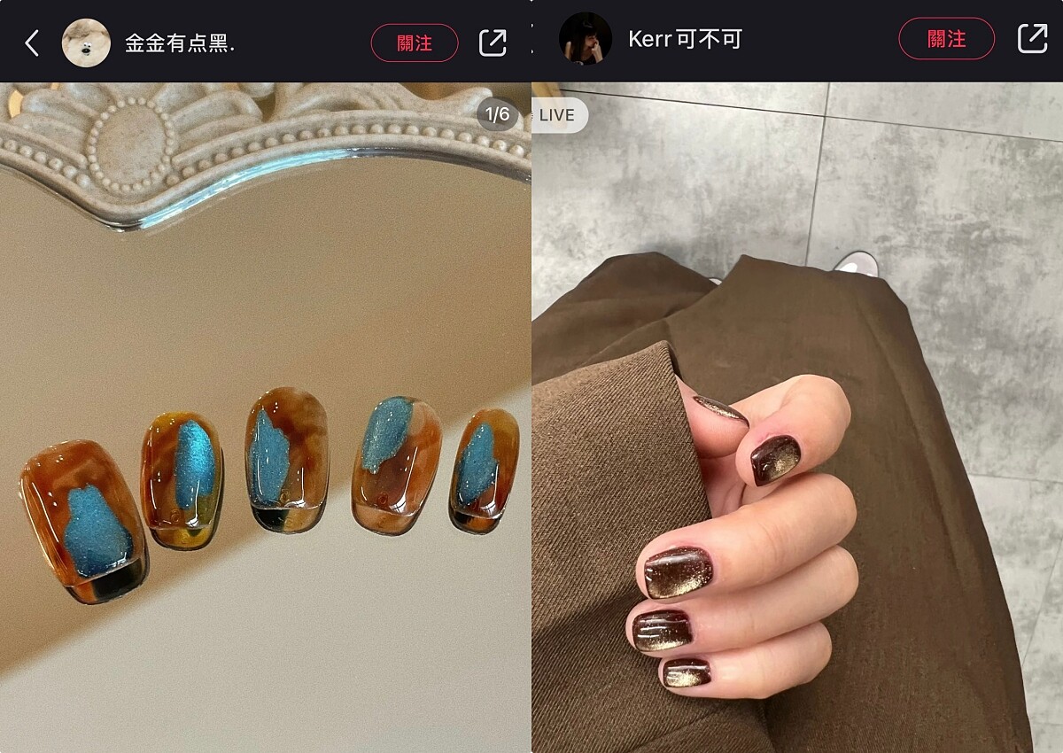 貓眼也是近幾年火紅的美甲元素之一,轉動手指時透出的閃爍光澤感特別吸睛,而今年搭上美拉德風潮,以咖啡、紅棕等色系最受歡迎!