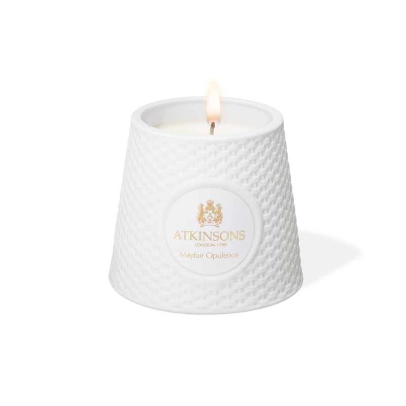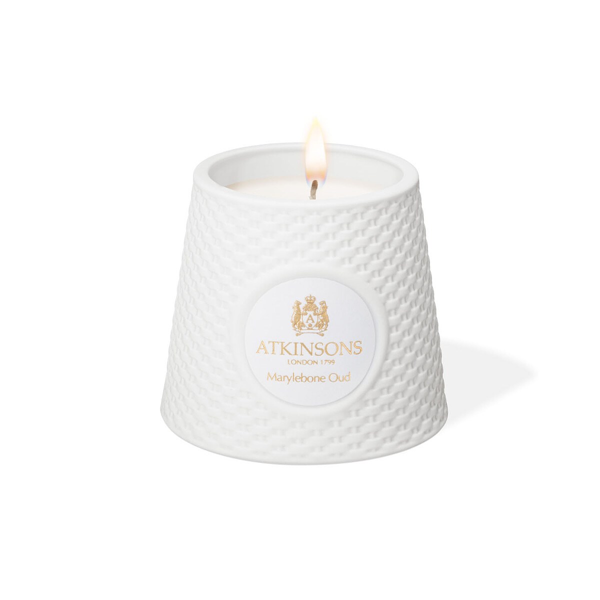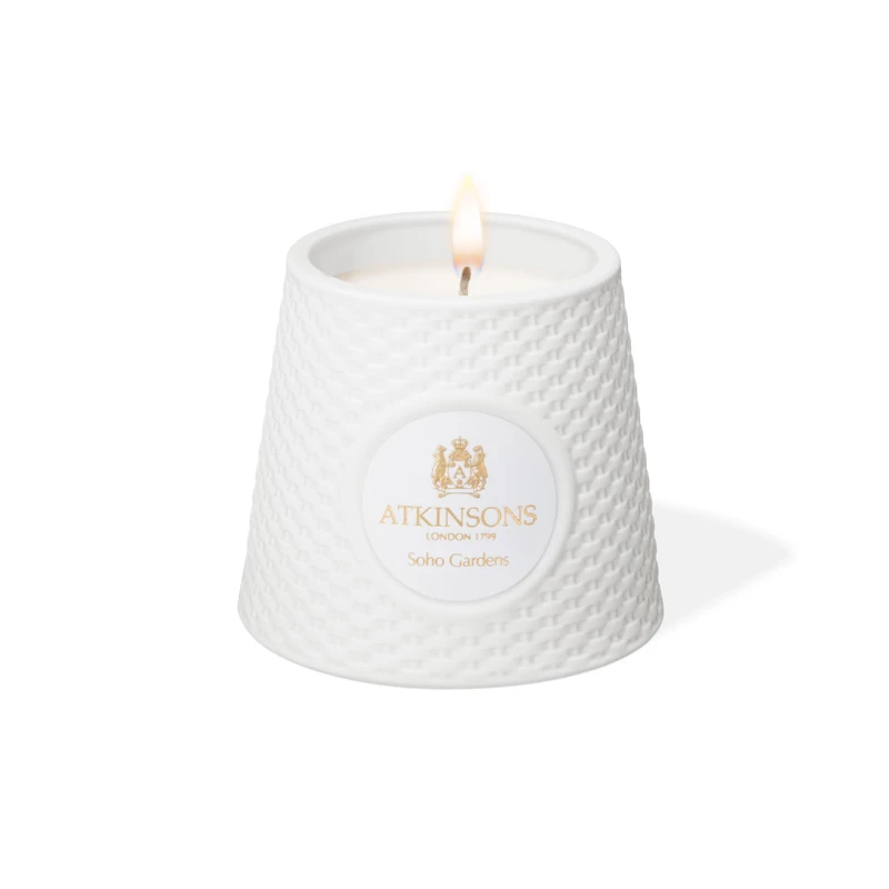 靈感則來自倫敦最負盛名的三個街區-梅菲爾、馬里波恩、蘇活,純白的編織紋路陶瓷瓶身,取自翻轉的ATKINSONS香水瓶蓋。蠟燭香氣更顯細膩優雅,洋溢復古與摩登融合的迷人倫敦風情。