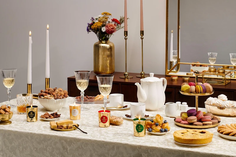 點燃蠟燭,香草、太妃糖、杏仁、蘋果樹花等香味,與難以抗拒的脆餅香氣、令人忘懷的紅茶香氣…甜蜜的午茶時光氣息,帶來閃閃發亮的聖誕儀式感。
