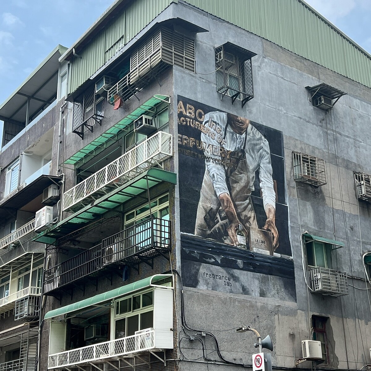 走在台北松菸文創園區的巷子裡,別忘了抬頭,你可能就會發現Le Labo手繪藝術壁畫!