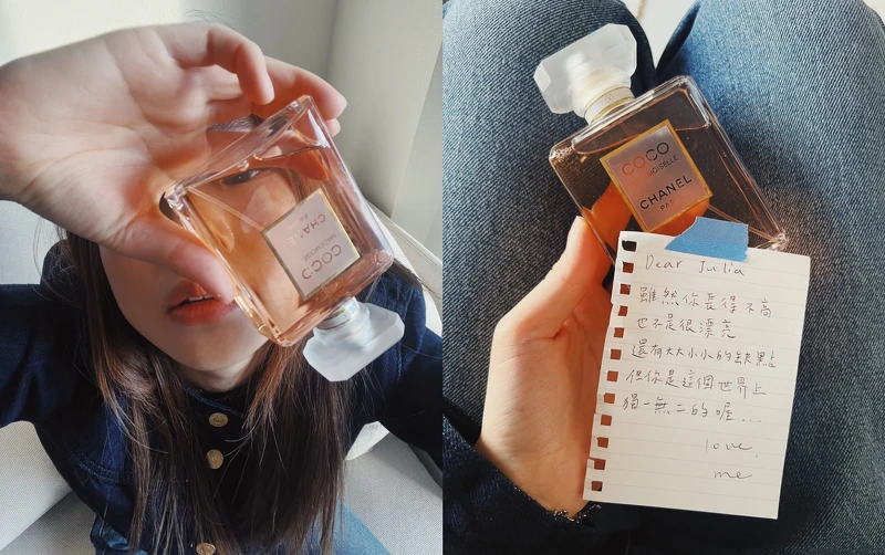 談起自己,Julia如此描述:「你不高,也不是很漂亮,還有很多大大小小的缺點。但你世界上獨一無二的!」這個二十世代女生的帥氣心聲,回想起自己第一次遇見「香奈兒摩登COCO香水」的情境,仍歷歷在目:「當時是去巴黎參加香奈兒香水活動,香奈兒摩登COCO讓我感覺是稍微有點距離感的女生會擦的香水,但是又讓人很想靠近她、瞭解她…」Julia從那次邂逅,就決定將「香奈兒摩登COCO香水」當成自己最珍愛的香氛朋友,「(香奈兒摩登COCO)就像我想了解的人,有雙面魔力的朋友,又甜又酷的朋友!」