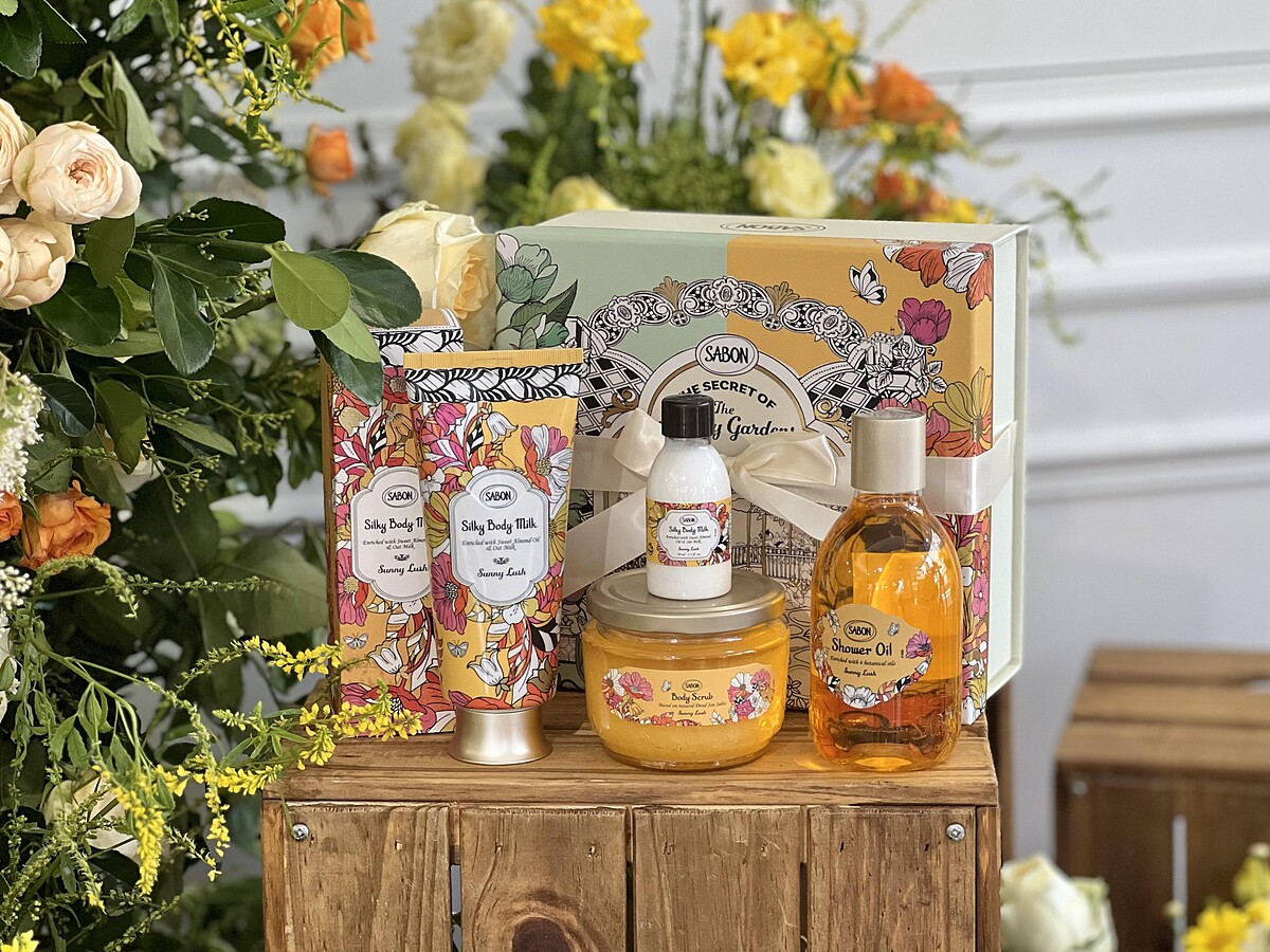 感官境遇五感留香禮盒:在兩個香氣中,沐浴油、磨砂膏、絲綢身體乳液,每樣單品皆可感官花園香氣二選一,每份禮盒中贈送「橙沐向陽絲綢身體乳液50ml」乙瓶。