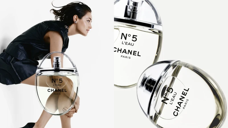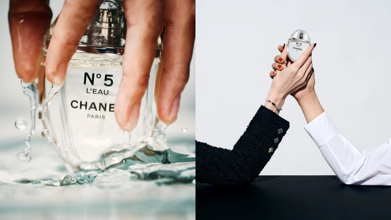 揉合了N°5 香水的經典氣息和清新的花香,蘊含了源源不絕的能量,帶來透明飄逸又端莊的氛圍。這一次,香奈兒首度替N°5 L’EAU 清新晨露淡香水褪下經典瓶身,換上澄澈通透、宛如第二層肌膚的水滴型透明玻璃瓶。