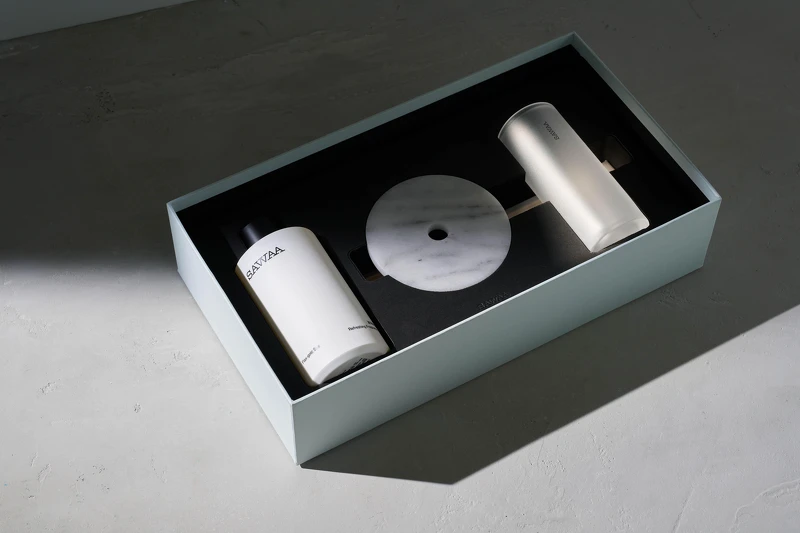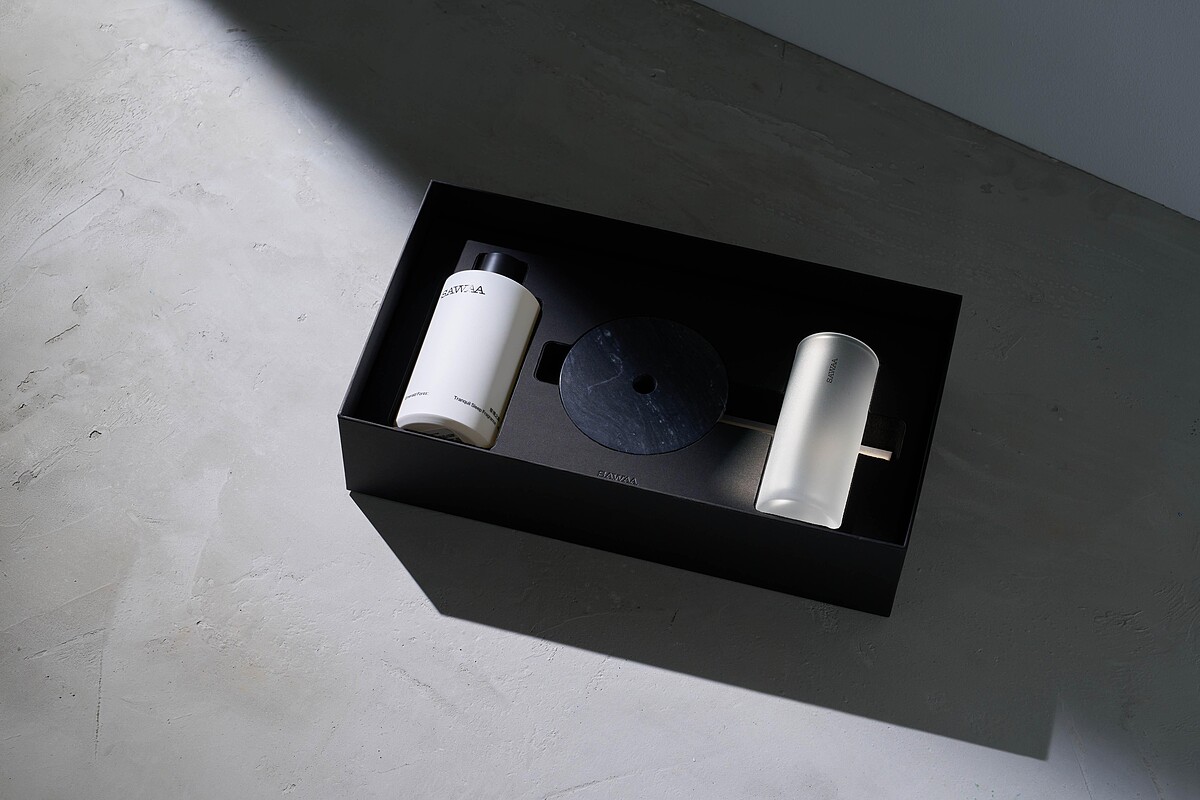 來自台灣的純淨保養品牌SAWAA攜手台灣設計師聶永真與春池玻璃,以自然景致為香味的藍本,將大地萬物的氣韻收於瓶中,打造出三款環境永續的居家香氛擴香禮盒,包含無垠之境、草境之森和滄洋映日,希望能讓大家找回遨遊於自然間的美好。
