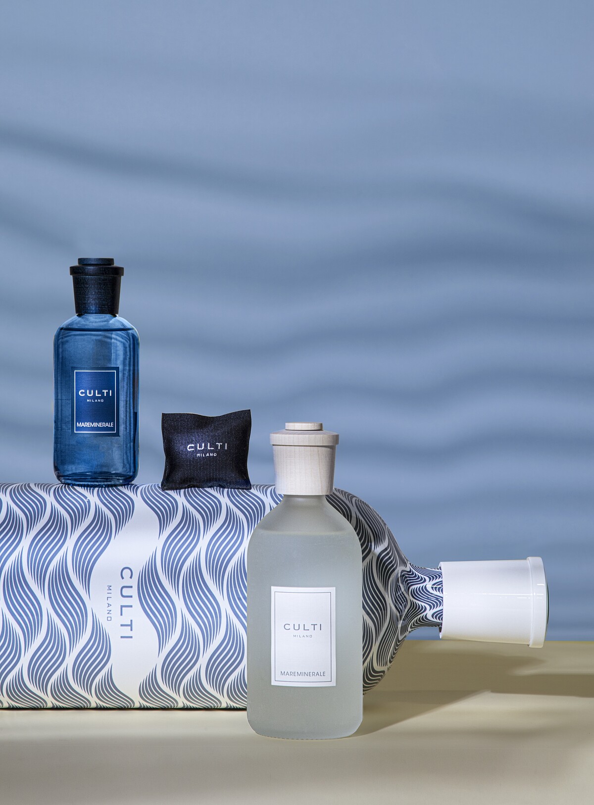 以CULTI 經典香氣 Mareminerale 蔚藍大海搭配,由海洋香調振奮人心的能量作為開場,明亮而精致。礦物麝香賦予其帶著海風鹹味的水生氣息,如同躍入海浪泡沫中一樣,感受著海洋中充沛的氧氣。