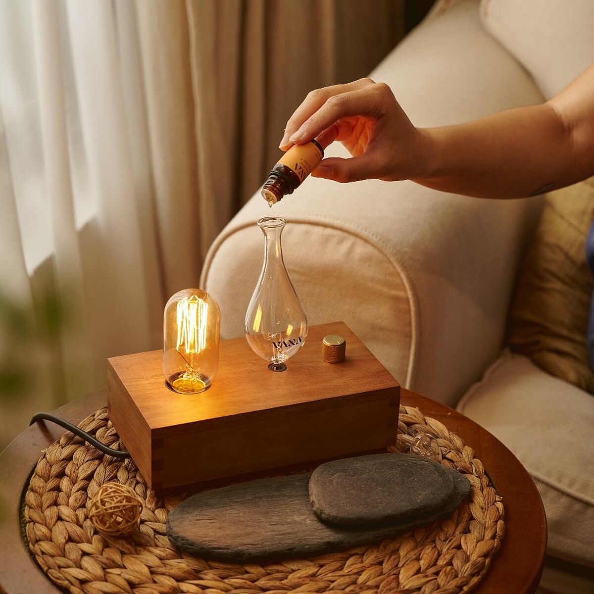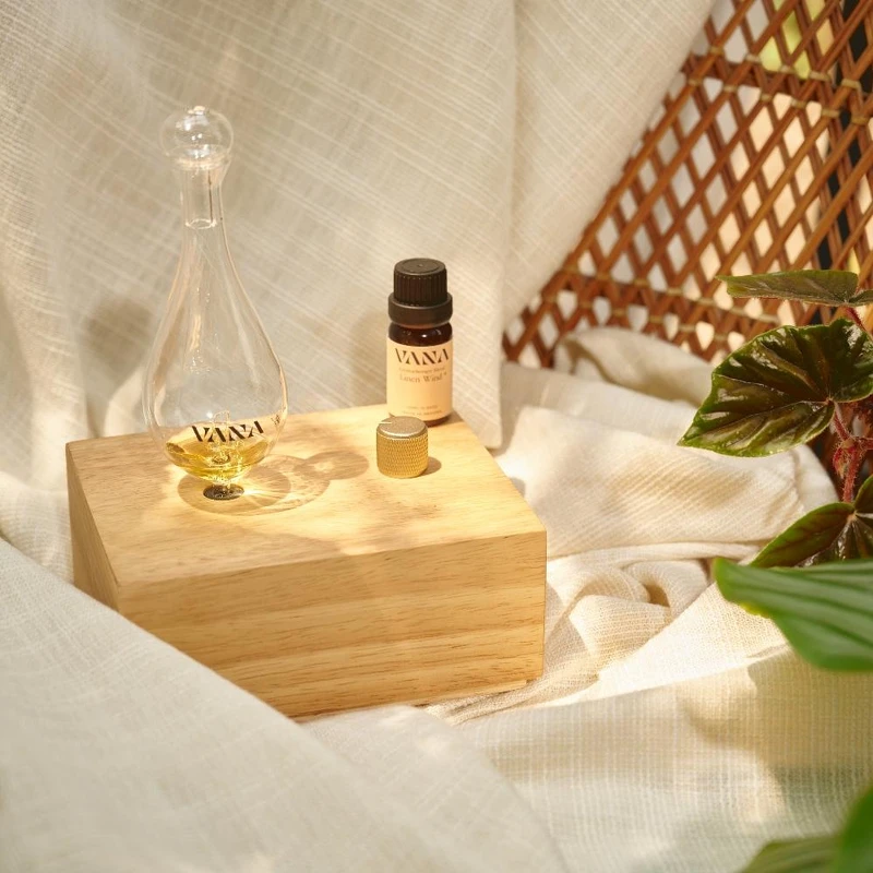 VANA期盼將大自然的清新香氣注入生活空間。全新擴香儀採用實木材料帶來溫潤手感,內置霧化器設計功能,將精油透過超音波震盪霧化為細膩且高度擴散的霧氣小分子, 從而保留完整香氣,無需加熱或加水使用。