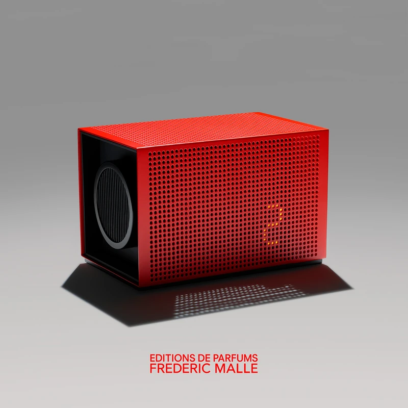 設計靈感來自老是機械投影機,如投影機投射影像,擴香機器則是把香味投射在空氣中,更換香氛片的動作也彷彿在更換投影片一般,儀式感十足。紅色網狀金屬設計稱之為「里吉圖勒(Rigitulle)」,靈感來自匈牙利材料藝術家馬蒂厄‧馬特戈特(Mathieu Matégot),透過穿孔金屬與金屬管結合,讓金屬彎曲、折疊甚至塑形,也讓它更輕量。