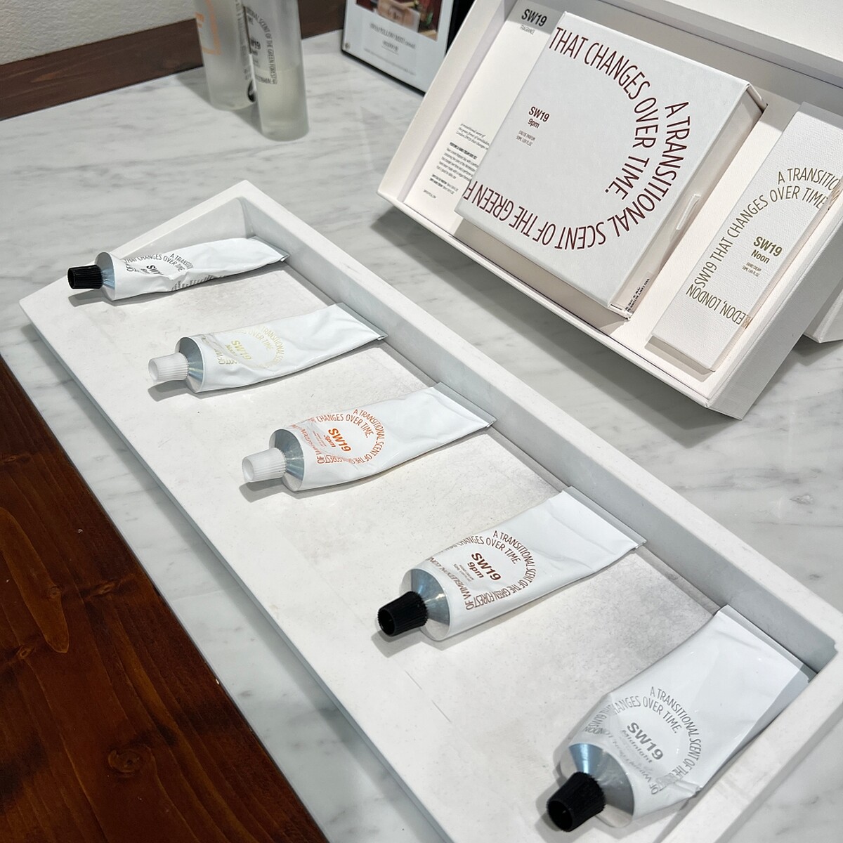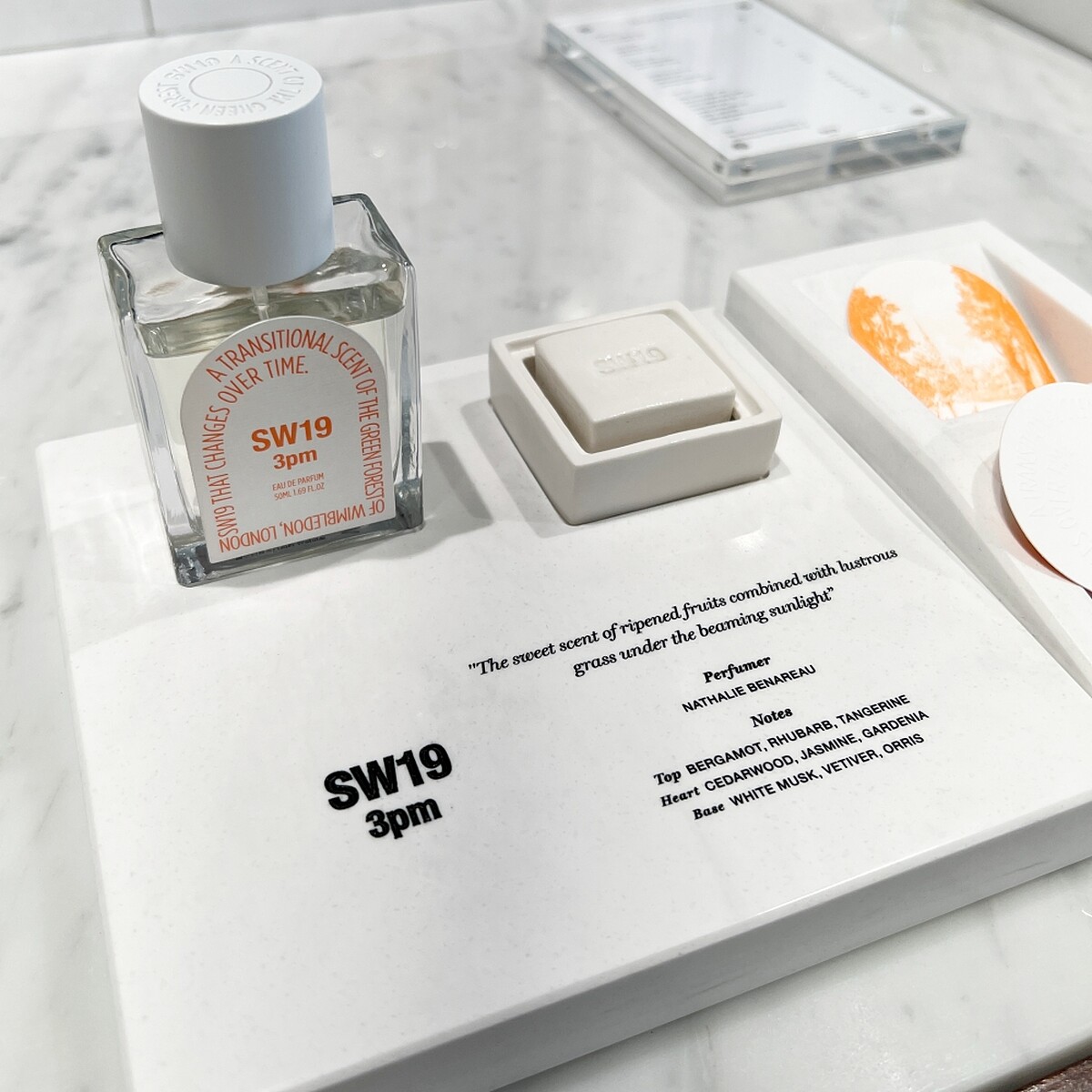 SW19目前有7種味道,分別以「早上6點、早上8點、中午、下午3點、黃昏、晚上 9 點、午夜」7個時段為靈感,用香味描繪出溫布頓的一日美景。