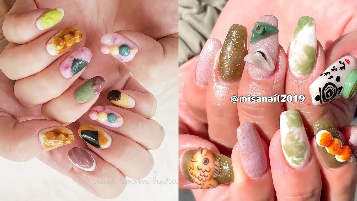 把日式傳統的「和菓子」變成美甲造型,看起來實在又美味又可愛,經典的烤糰子、讓人忍不住多吃一口的抹茶紅豆,還有慶典中必備的鯛魚燒⋯你最喜歡哪一款?