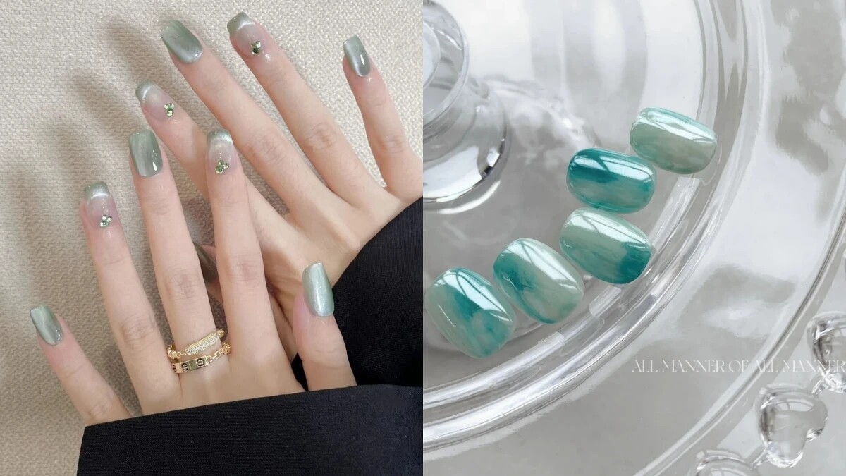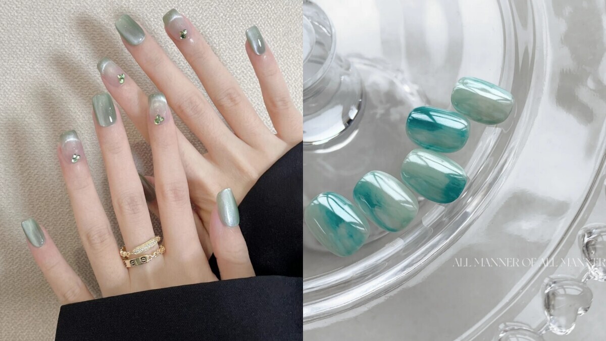 綠色系美甲在夏天一直很受歡迎,今年尤其流行介於藍與綠之間、還帶點透明感的「薄荷曼波色」!