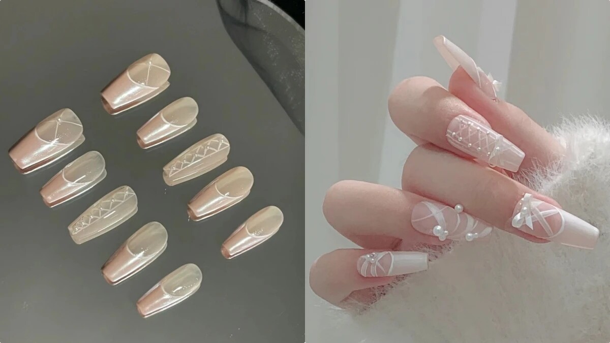 Balletcore是以芭蕾舞者為靈感的風格,像芭蕾舞鞋、蝴蝶結、緞帶…等元素都是,而將它們放在指甲上就成了最夢幻的芭蕾風美甲!