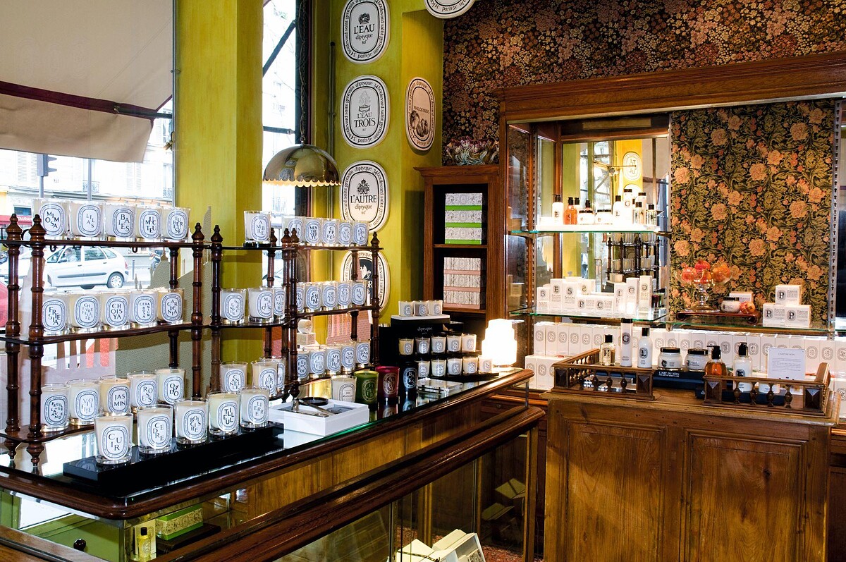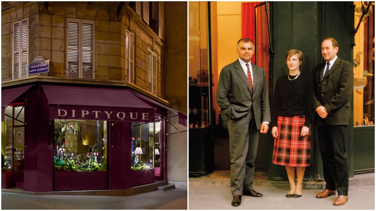 近年紅遍全球的法國香氛品牌 Diptyque 原起地即是巴黎,三位創辦人好友於1961年在巴黎聯手開了一家商店,以展示他們選品的布料、壁紙與裝飾藝術品。創辦人們獨到的品味,透過別緻的市集小物或是世界各地旅程的選物,意外地受到大眾認同,進而轉型成為一家精品選物店,販售神奇的燈籠、珍貴玩具、美麗的瓷器和別緻的筆記本,以及一些自製珍品包括印花織物。兩年後推出了品牌的香氛蠟燭—於1963年製成的山楂、茶樹和肉桂香氛蠟燭,開啟Diptyque 的香氛旅程。