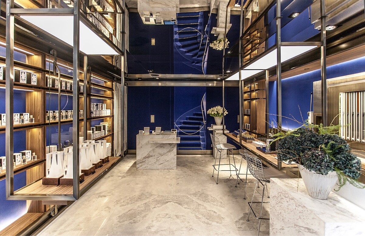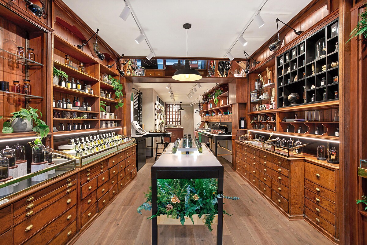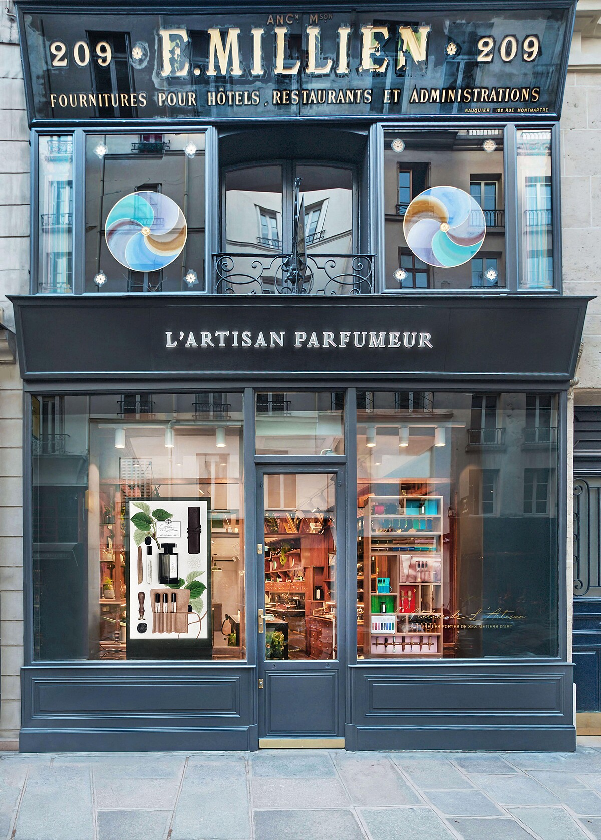 香水店的前身是《人權和公民權利宣言》主要起草者 Joseph-Ignace Guillotin 醫生的家和辦公室。改裝後的香氛店結合法國傳統藥房與80年代初的現代設計,建築靈感來自創辦人最初工作室,店裝以大理石、銅和橡木等材料,體現弘揚手工藝的願望。L’Artisan Parfumeur 賦予調香師們表述氣味的自由,對大自然獻上至高詠讚,這家店也是向這份價值觀致敬。