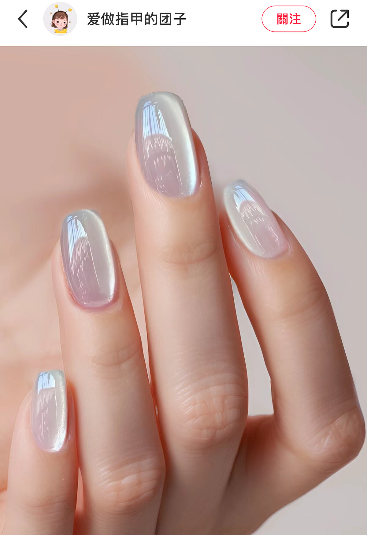 最經典的涼白開水美甲就是用白開水色做成的玻璃珠貓眼,色澤清透,十分耐看。