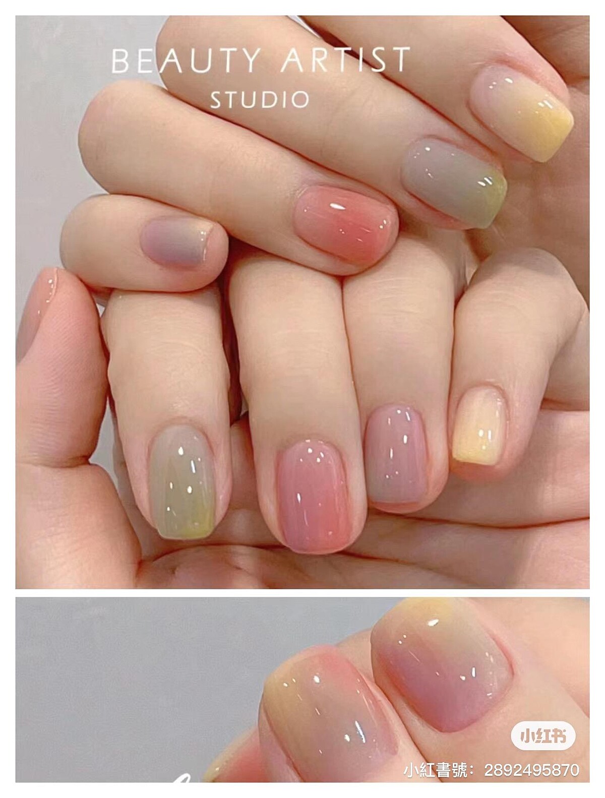 繽紛又帶點通透感,是我們對糖果的第一印象。通常水果風味的糖果,顏色上也會根據口味不同變化,打造出如彩虹般繽紛,卻不會過於飽和難駕馭的色彩。運用在美甲上,多為高明度的淺色系,可能是10隻手指頭選上不同的色彩,或是在甲面上以暈染、拼接手法呈現撞色、跳色的風格,粉紅、粉藍、黃、淺綠都是常見色系。