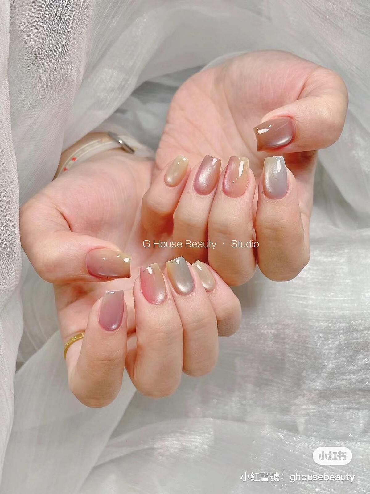 該如何展現這樣的通透感?有的美甲師會融合貓眼、有的美甲師則是搭配鏡面,又或是利用凝膠打造立體的質感,讓最上層的立體透明凝膠透出底下的色澤。