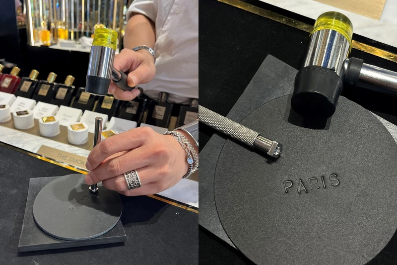 傳承了奢華家風,融合創辦人自身叛逆感的KILIAN PARIS「香氛暢聊酒吧」體驗活動還有個獨家環節:皮革杯墊手做,簡約白與黑色兩款選擇,並想好刻印的英文字母逐一敲製,宛如走訪法國高訂工坊,親自體驗精湛工藝頌歌的過程!無法飛往法國就來這也能讓你的人生中留下巴黎精品訂製儀式感,誰能不愛上。