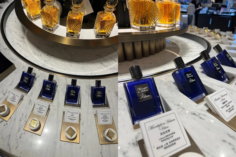 喜歡拍照的你,千萬別忘了KILIAN PARIS奢華亮點,路過都會停下腳步的金碧輝煌櫃位,走進去更不得了!霸氣銘酒鎮樓像極了「我今天好像來參加派對」的感覺,香水吧檯擺放著水晶玻璃打造銘酒系列令人目不暇給,轉身又是如藝術品的隨身酒壺每罐都澄澈精緻,360度被圍繞的奢華空間,隨時都歡迎大家!