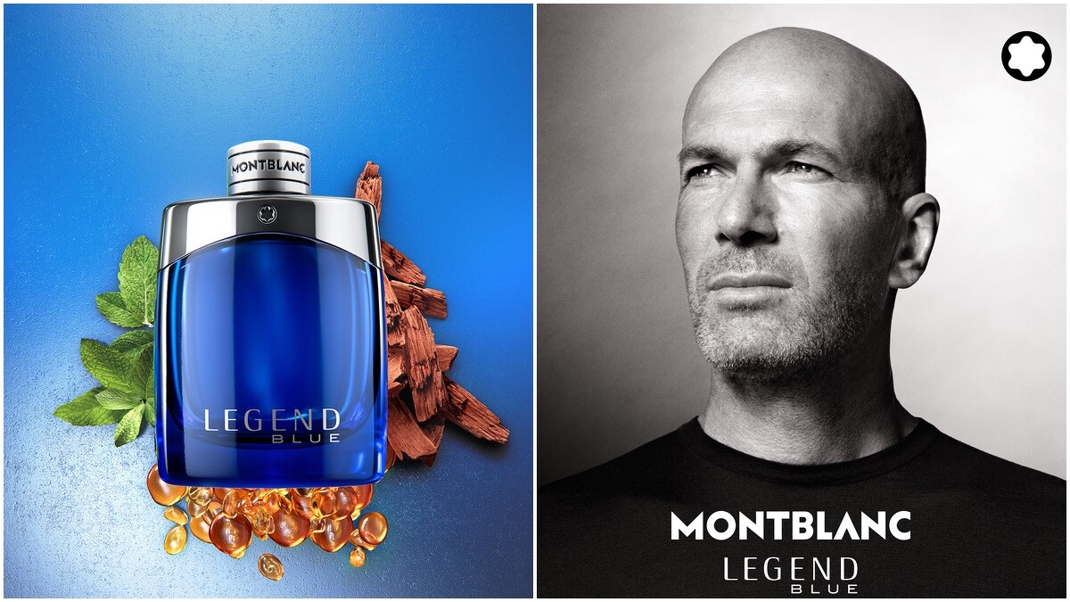 由足球明星席內丁·席丹(Zinédine Zidane)擔任MONTBLANC傳奇系列香氛的全新廣告代言人。香氛旅程由綠薄荷和薰衣草開啟,帶來鮮明的清新芳香調,接著雪松與檀香譜出真實又帶有男性魅力的木質中調,展現了能經受歲月考驗永恆的一面,同時帶來精緻的香氣。最後,龍涎香揉合苔蘚,為傳奇紳藍淡香精的香氛旅程留下優雅又濃郁悠長的尾韻。