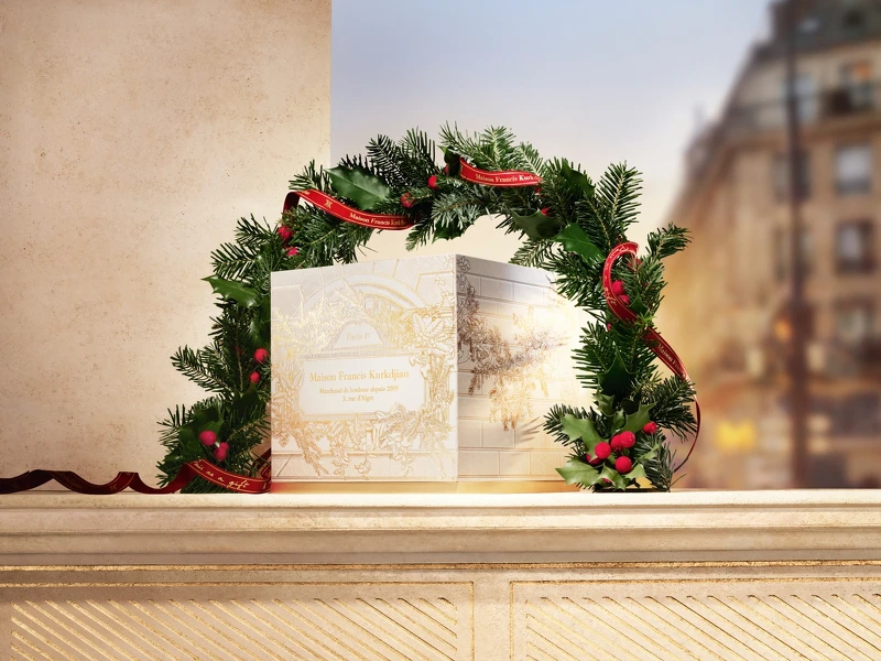 位於巴黎的Rue d'Alger 街5號是Francis先生於2009年創立第一家同名香氛精品店的起源地,今年MFK就以此地為靈感。包裝上飾有Maison Francis Kurkdjian商標、創立年份及地址,節日裡象徵幸運和愛的傳統符號的冬青和槲寄生枝條,充滿聖誕的氛圍!