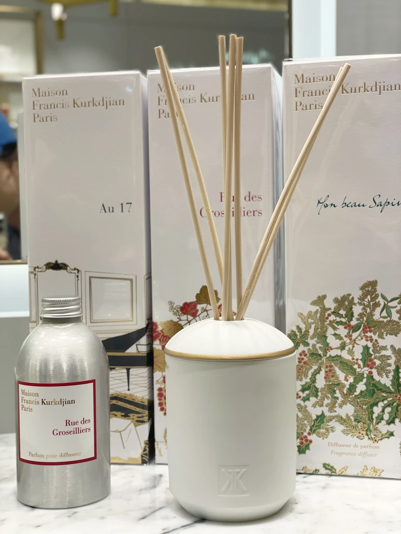 除了奢華隨行香氛禮盒是初次現身外,今年MFK也在聖誕節首度推出居家擴香。以Homes Sweet Homes美好家香最熱賣的兩款蠟燭Au 17 17號巴黎家、Rue des Groseilliers格羅塞利莓果園及聖誕限量回歸的Mon beau Sapin耶誕冷杉這三款味道優先登場。