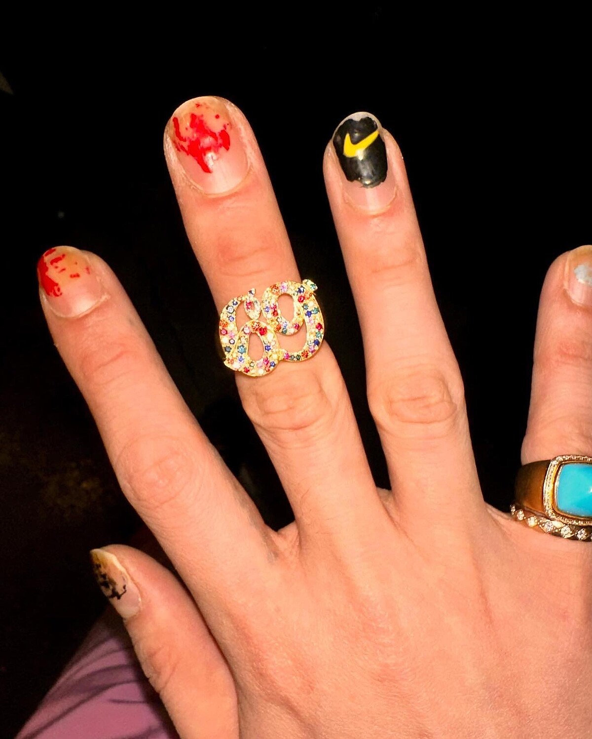 隨意的點上指彩,以黑底襯托黃色NIKE的LOGO,是獨屬GD的隨性!