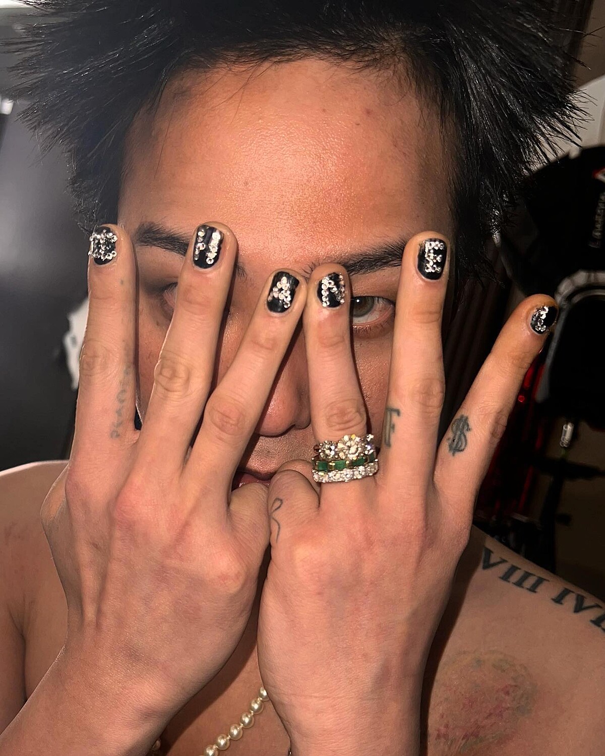 自家品牌的經典標誌怎麼能沒有?看到這裡不免覺得GD好像蠻鍾愛薄荷綠,這個顏色的指彩很常出現在他指尖呢!