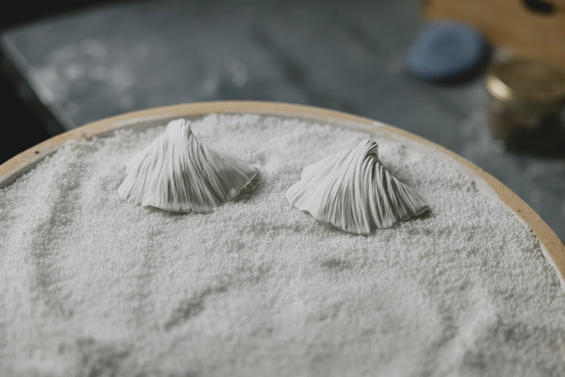 要組成「玫瑰的光輝」這件作品,歷經了許多細緻的過程。首先需要由塞夫爾皇家造瓷廠的工匠們以潔白無瑕的軟質瓷製作,再由石膏工坊手工製作的一系列模具逐片壓製、脫模以及精心雕刻,才能獲得獨特的表面效果,接著將花瓣置於1050°C的高溫下燒製10.5個小時,出窯後輕輕拋光,最後才是由 Francis 噴灑上他為此特別創作的、絕無僅有的玫瑰氣息,展現了玫瑰細膩、輕柔和感性的一面。