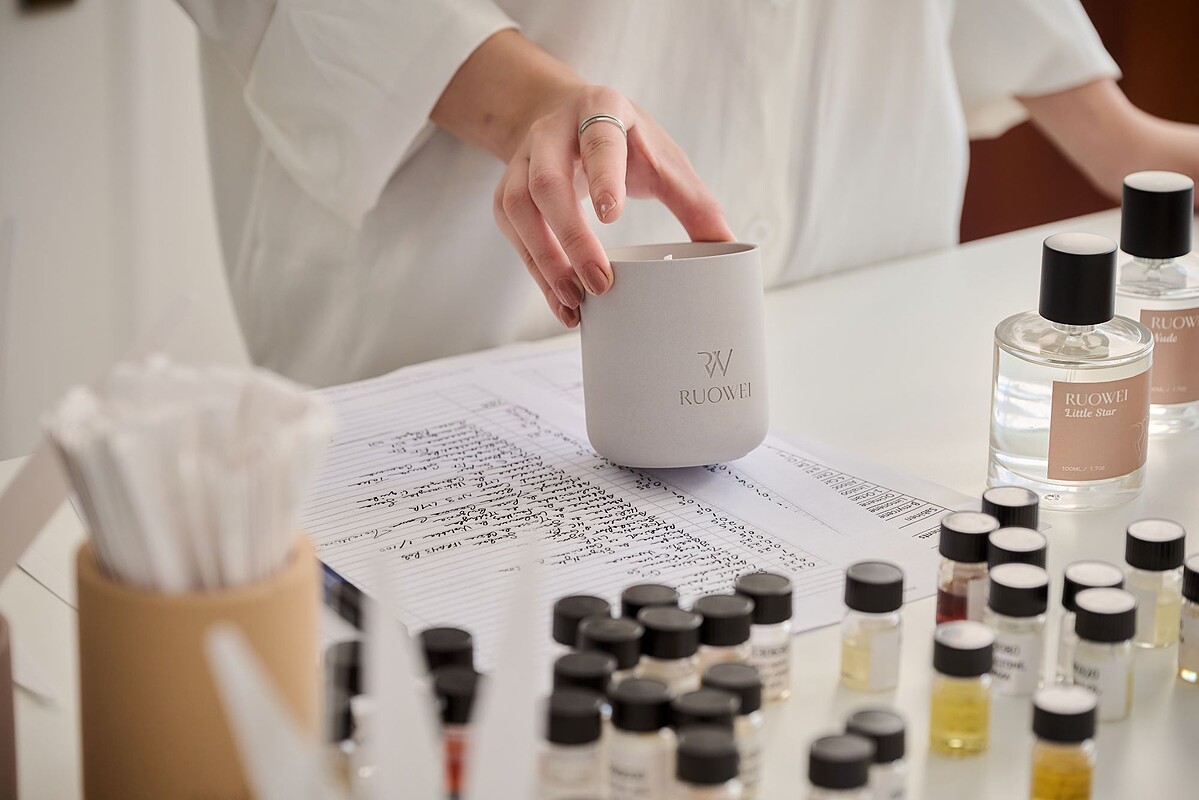 身為少數的台灣調香師,若維早前在倫敦唸化妝品科系時開啟了對香水的興趣,於是前往法國攻讀調香水專業校,後來在全球前五大香精公司擔任調香師,如今回到台灣實踐對香水的熱愛,創辦了香水品牌RUOWEI肌膚香。