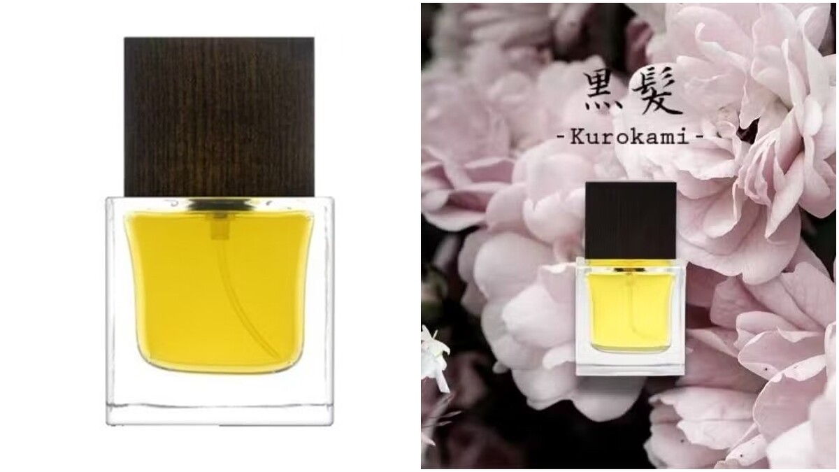 標題意思是黑髮,這款香水代表了日本美學的精髓:精心打扮的美女和優雅的舉止都讓人欽佩,一種迷人的花香,充滿了茉莉和玫瑰的精緻,對於女人或男人來說為西裝雕刻精琢的香味。簡單來說,就是台灣巷口常聞到的「月橘花香/七里香」。清新玫瑰、略帶哚的茉莉花與些許的檀木穗甘松,而天然精油的質量,是對於自然界的真實捕捉,使得香氣有著玫瑰的香、甜、酸、澀並存,也有很多人對它的解讀是橙皮與玫瑰,疊上淡淡的奶油茉莉以暈出清新的春天明媚風光,簡單到不行的自家庭院種植的蔬果與盆栽,純淨自然的風格演繹,幻出美麗迷人的倩影。