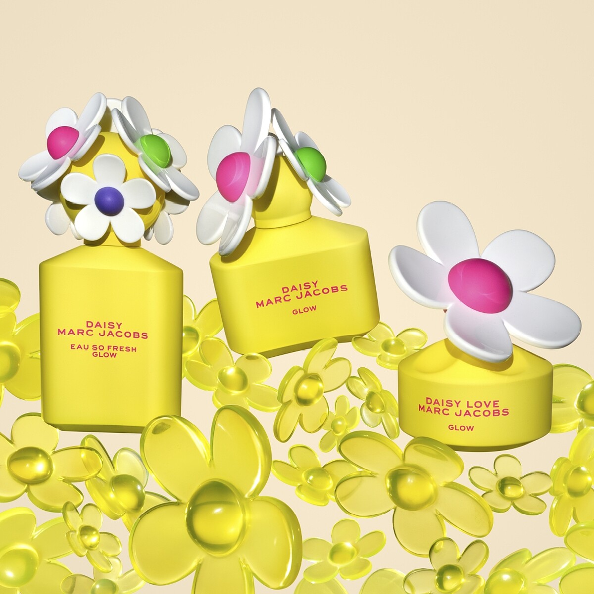全新的三款氣息,瓶身以標誌性的雛菊作為全新裝扮,採用品牌經典黃色色系,搭配霓虹色系的粉紅、綠色和紫色點綴,讓瓶身散發出極致的閃耀光彩。