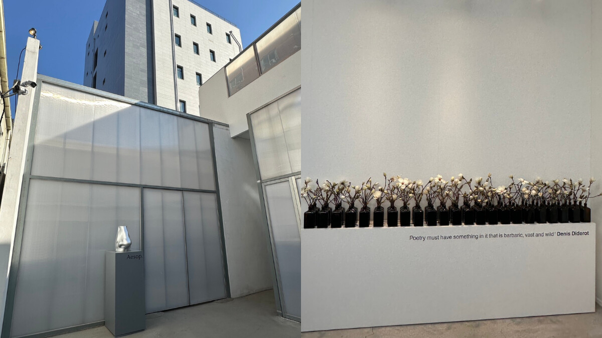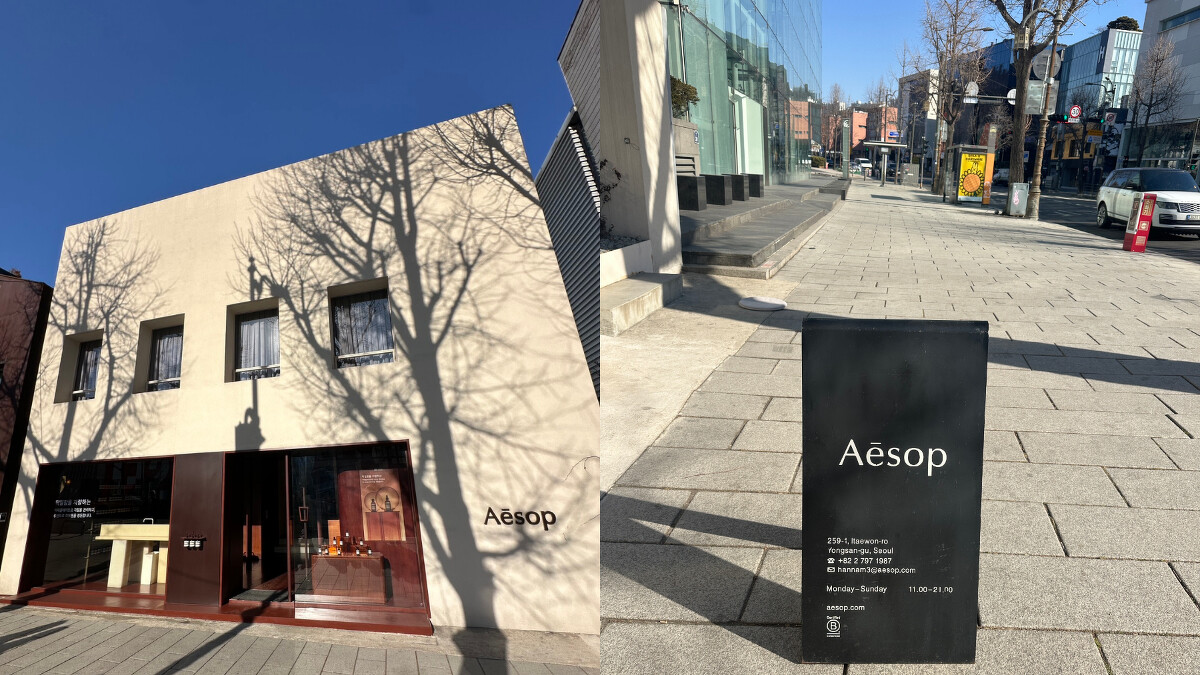 雖然陽光燦爛,首爾這幾天的體感溫度卻逼近零度,在發表會前一天,我們先來到了Aesop漢南店,店鋪位於繁忙的城市中,室內空間以傳統韓屋為靈感,厚重的漆木面板為我們帶來無比的溫暖與柔軟,隨著店內沉穩悠閒的氛圍,讓我們能夠細細品味Aesop漢南店,首先在店內中央設置了一個金屬香氛櫃,它的設計是參考傳統的韓國梳妝台,如抽屜般可層層打開展示櫃,陳列的是歷年來的香氛作品及試香盤,可以好好回味之前的香氛氣息,店內的兩側均有大面積的落地窗,其中一側是可以讓顧客走出戶外的空間,特別於戶外空間設置小小的書櫃,天氣暖和就拿本書坐在戶外,天氣冷就窩在室內沙發,聞著Aesop專屬香氣,沉浸在閱讀的氛圍裡,好不愜意!