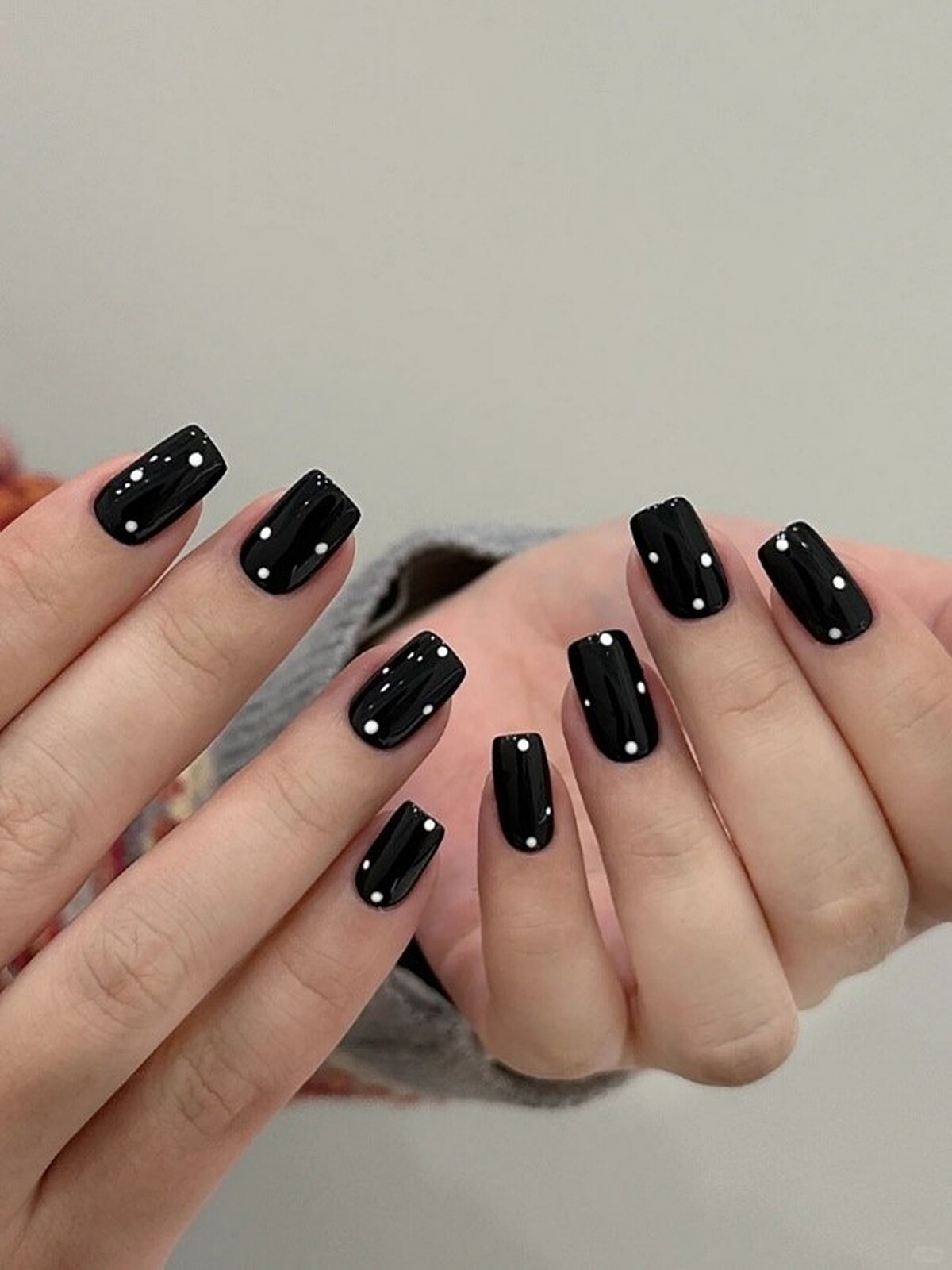 在黑色甲片上方勾勒兩三顆白色波點,像夜空中閃爍的小珍珠,柔美又迷人。
