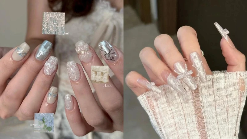 蕾絲美甲是一種融合優雅與甜美氛圍的經典款式,細膩的蕾絲圖案不管是約會、婚禮還是日常穿搭都能展現出溫柔婉約的氛圍。