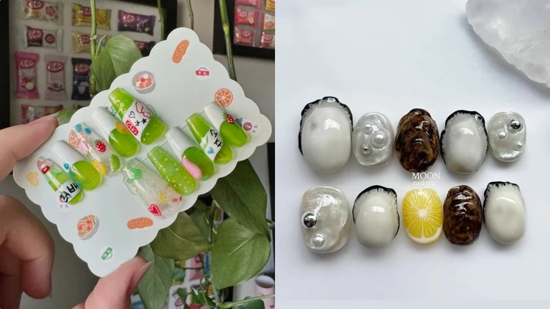 美食空最適合的美甲!從生肉、海鮮到蔬菜美甲都可以搭配韓式、日式和中式多國燒烤風格。