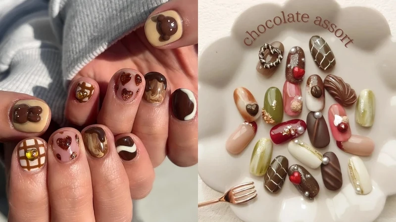 美甲造型變化超級多,運用不同的材質和彩繪手法,可以把任何東西栩栩如生的還原到指尖上,巧克力當然也不例外!