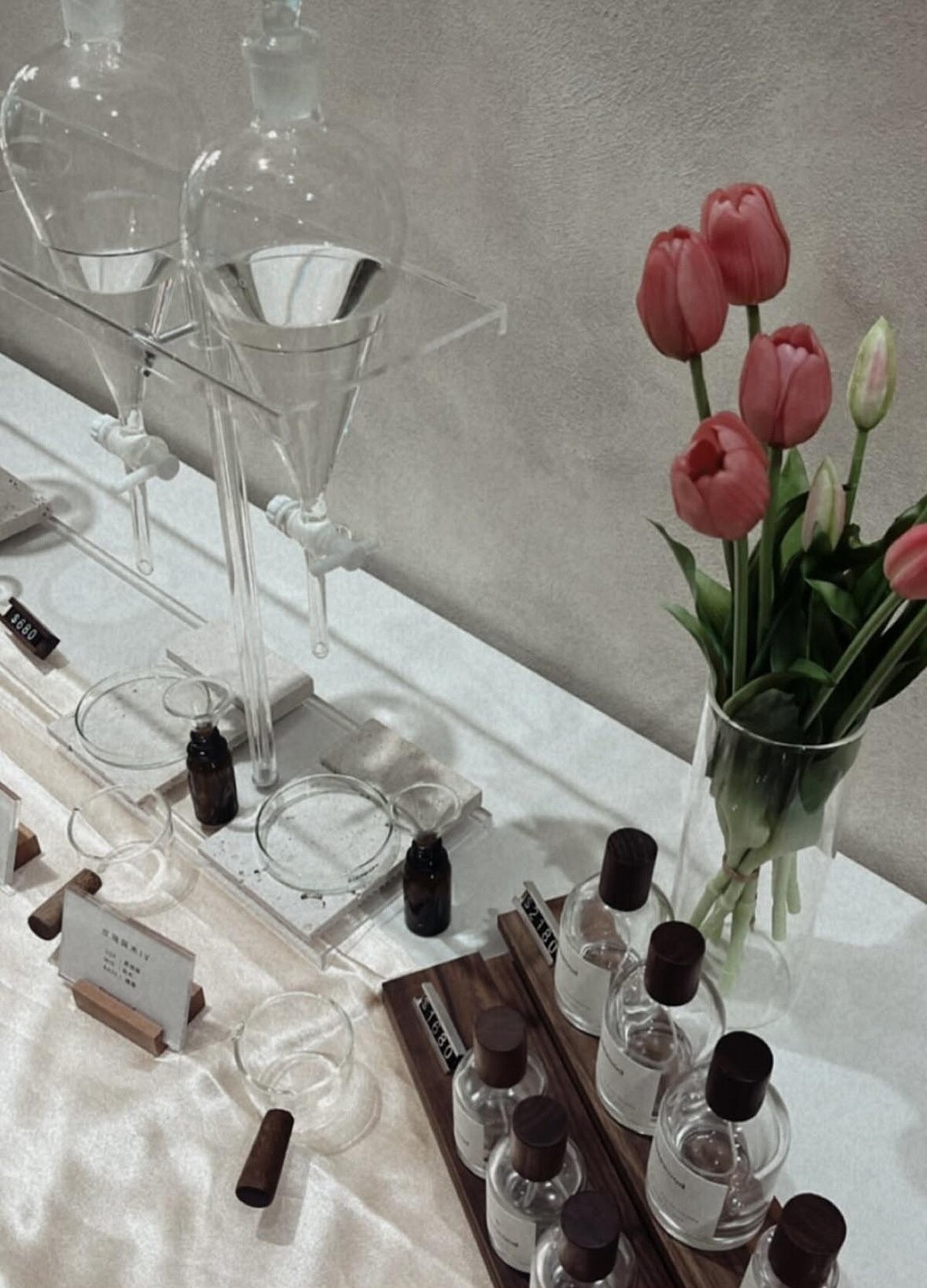整個體驗最精彩的部分莫過於「調香 DIY」!在專業人員的引導下,大家都能化身調香師,選擇自己喜歡的香調,親手調製一瓶專屬於自己的香水。高達50多瓶的香精原料由創辦人若維親自嚴選。完成的香水作品不僅是一種氣味,更是屬於你的「記憶標本」將當下的心境留存。