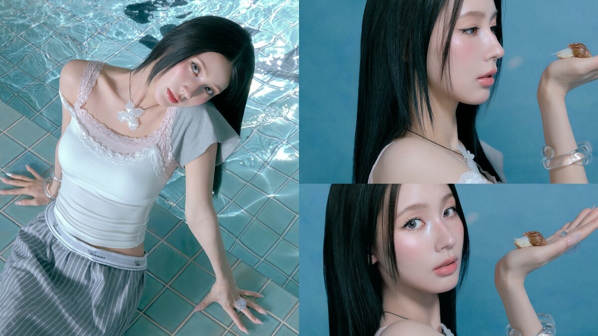 在IG釋出的幕後花絮中,可以看到她配合水池意象,指甲也換上粉紅與粉彩漸層的顏色,看起來十分夢幻。