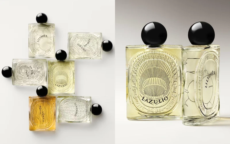 除了經典的橢圓瓶系列外,Diptyque 也推出了一個頂級淡香精系列支線 Les Essences de Diptyque 。Les Essences de Diptyque 系列向 6 款自然至臻瑰寶致敬,細緻而超現實的香氛作品,以珊瑚、珍珠母貝、樹皮、睡蓮、沙漠玫瑰與孔雀羽毛為題,乍看瓶身會讓人有點猜不出是 Diptyque,但只要仔細一看,就會發現那個熟悉的橢圓雕刻還在,就像是透過一扇小窗望向另一個世界一樣,延續了品牌一貫的藝術靈魂與細節品味。