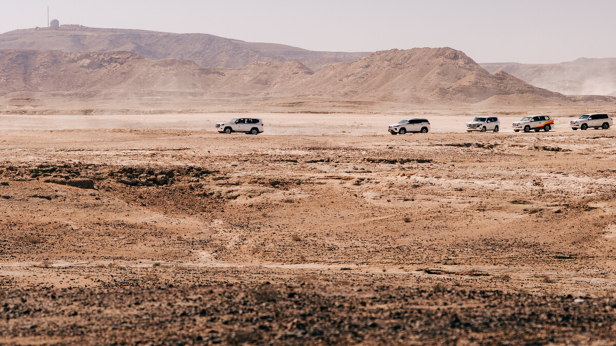 從臺灣飛到阿曼約12小時,這個季節溫度約落在21度到28度之間,阿曼與臺灣一樣皆有北回歸線通過,卻擁有截然不同的風土與地貌。位在阿拉伯半島東南方的阿曼,國土面積約為臺灣的8.6倍,有超過80%是沙漠和乾旱谷地,綿延出靜謐的金色地景;而臺灣因地勢起伏、四面環海,約有60%的森林覆蓋率,翠綠廣袤,充滿生機,形成鮮明的對比。