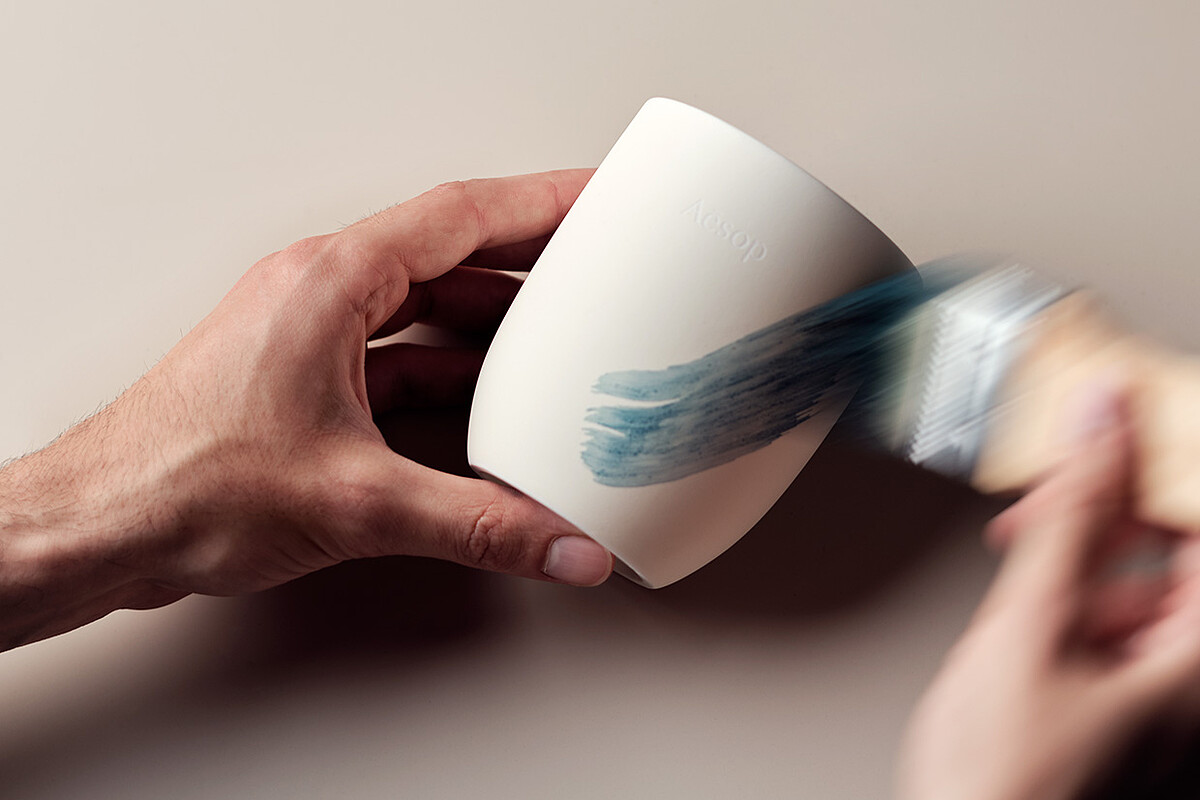 這是因為在產品的製作過程中難免會有瑕疵,但Aesop這次想透過藝術賦予物品更加值得珍惜的第二生命。