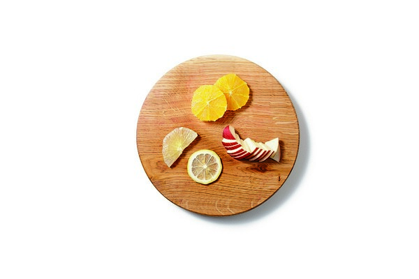 ►柳橙剝皮後切成5枚圓片。