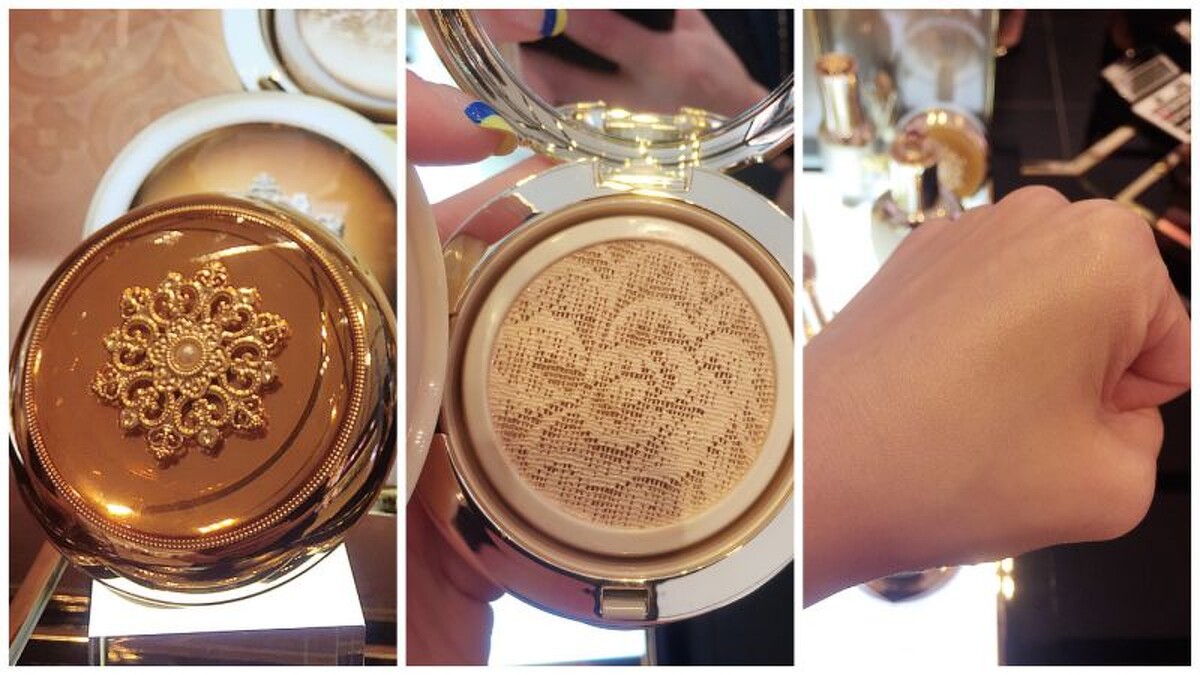 粉盒一打開,像蕾絲般的氣墊篩網,立刻引來驚呼!這是一款會美到沒朋友的氣墊設計,而且雙層氣墊出粉更細緻,粉底中添加「天氣丹」系列精華,是后氣墊粉底中最頂級的系列,妝感則是屬於絲絨霧光,除了氣墊粉撲還附有粉刷可以使用。