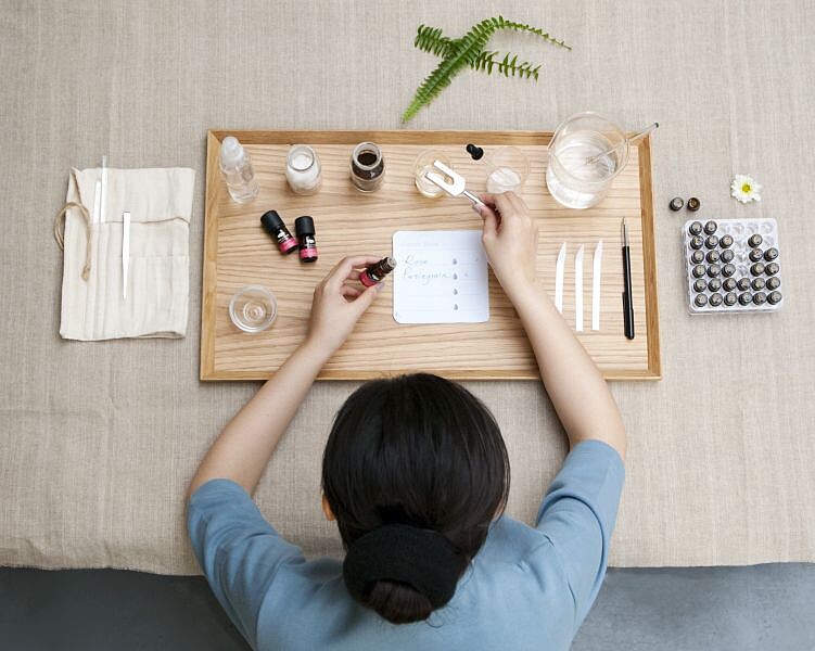 滴水測試法:質輕且蒸餾萃取的精油(如薰衣草),滴入水中會散開,木質或樹脂類精油(如岩蘭草)通常會往下沉。