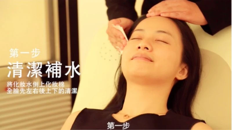 洗完臉後用化妝棉沾取新生高效緊緻活膚露,先左右、再上下擦拭肌膚。
